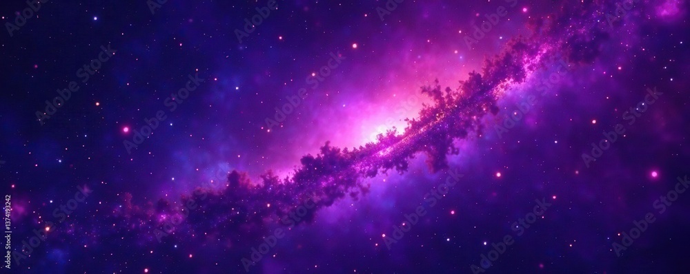 • Vibrant violet space background with distant galaxies and twinkling stars, background, night