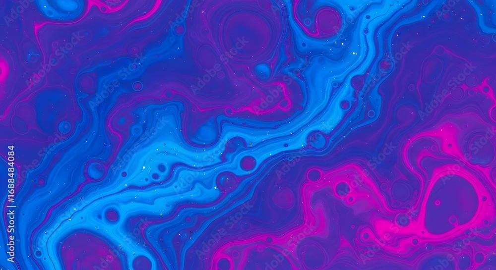 • Vibrant abstract fluid art with swirling blue, purple, and magenta colors creating a dynamic marbled pattern and organic textures.