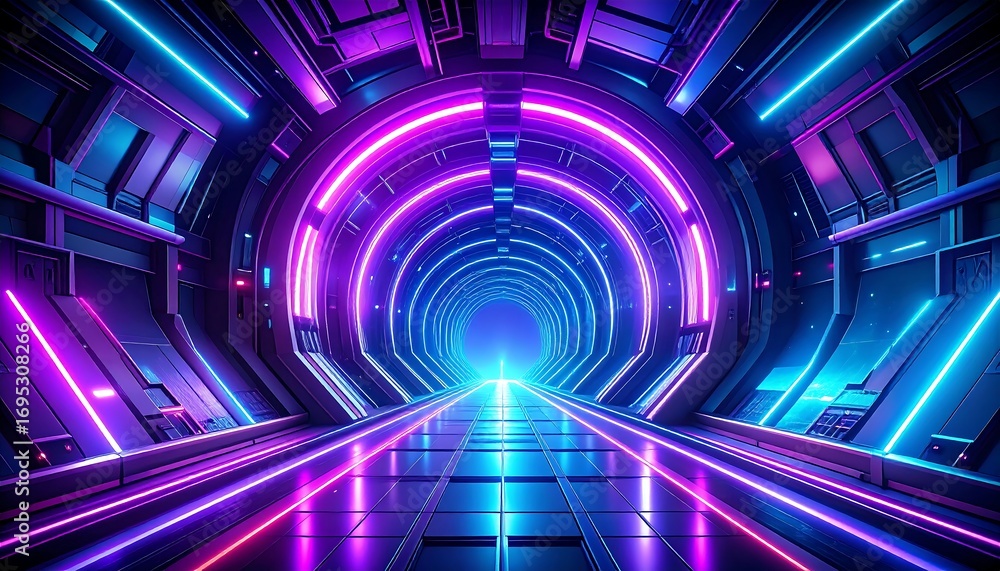 Chabrowy Panel Szklany - Futuristic neon tunnel (9) #1695308266