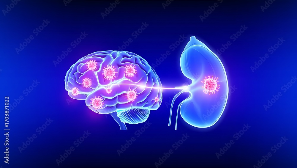 • Brain and Kidney Infected with Coronavirus Disease Outbreak and Medical Illustration