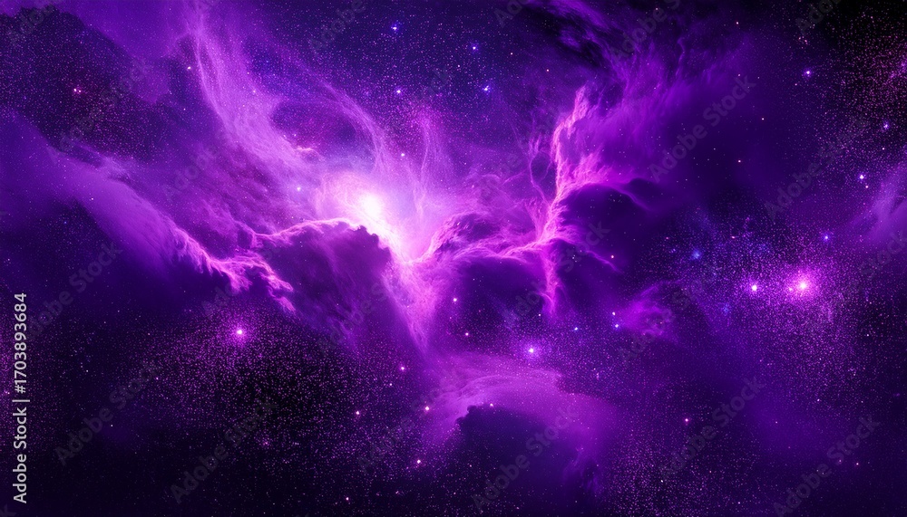 • Fantasy Deep Space Nebula Glowing In Violet Tones Ethereal Interstellar Dust Scattered Stars And Dark Matter Cosmic Fog Illuminated By Distant Suns Violet Nebula Cosmic Fantasy