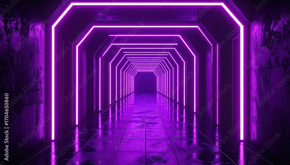 Chabrowy Panel Szklany - Neon purple tunnel. Glowing, futuristic corridor #1704650860