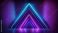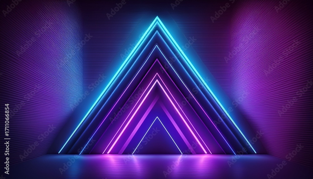 • a picture of sharp neon shapes in violet purple and blue lights arrow and triangle styles glowing wall background ai generated