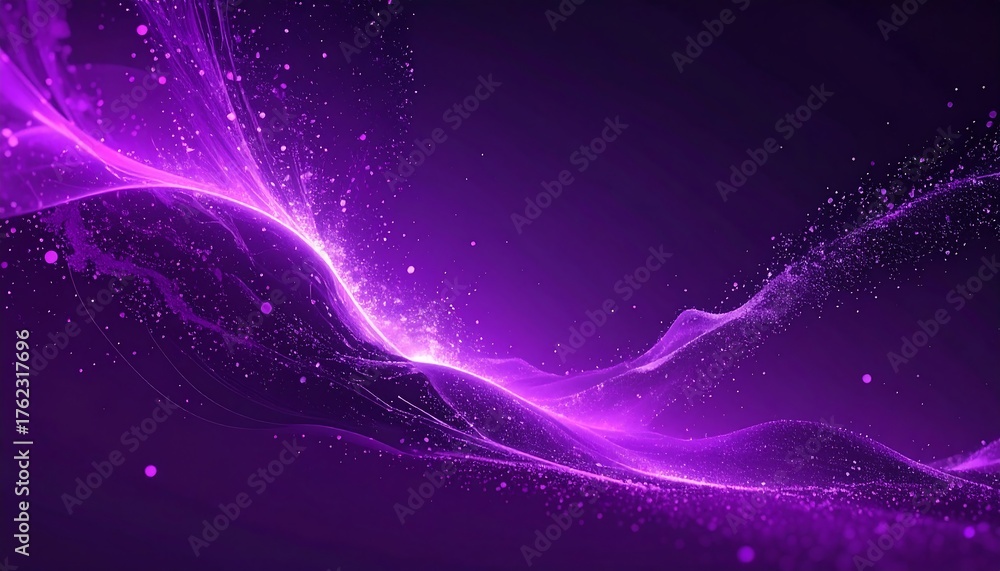 • An abstract digital artwork featuring flowing, luminous lines and particles in shades of purple and violet, evoking a sense of energy and motion