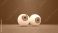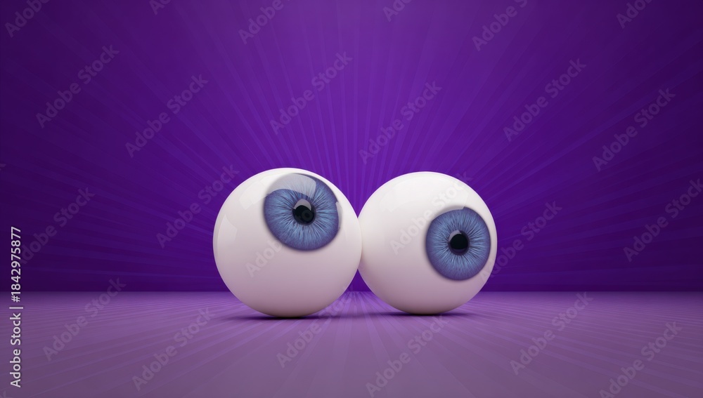 • Two realistic eyeballs with blue irises on vibrant purple background