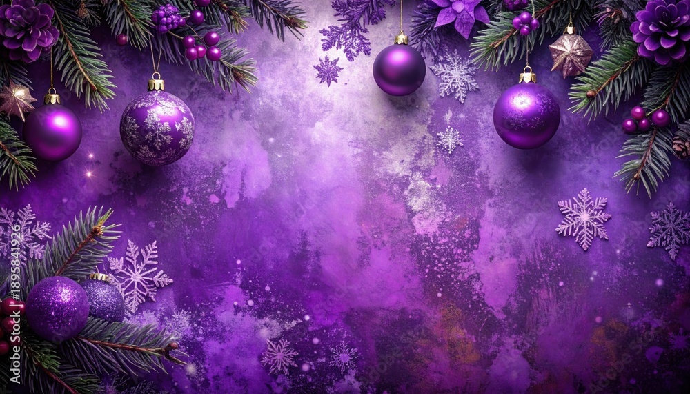 • Elegant Purple Christmas Background with Ornaments and Festive Decorations.