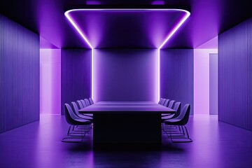 Dekor szklany Minimalist interior with a geometric wall, bathed in purple light.Dopasuj i kup