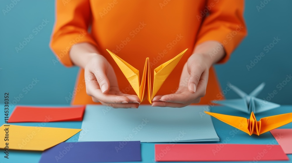 Origami Panel Szklany - Creative origami crane crafting at home artistic tutorial colorful paper environment engaging... #1145330352