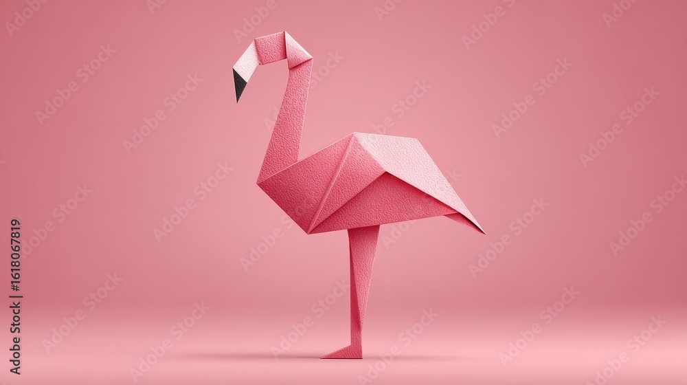 • Handmade origami flamingo craft soft pink art japanese paper fold elegant animal display