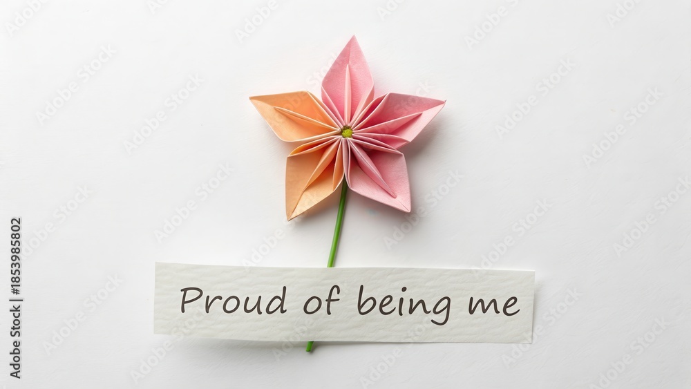 Origami Panel Szklany - A colorful origami flower on a white background with a message #1853985802