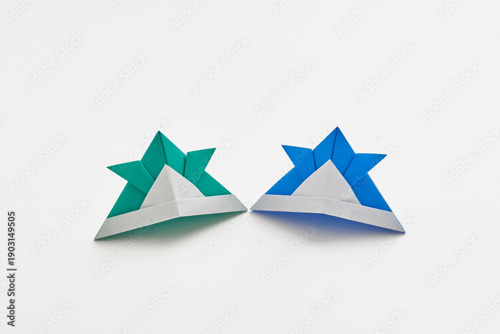 Origami Panel Szklany - 折り紙で折った日本のカラフルで可愛い兜 #1903149505