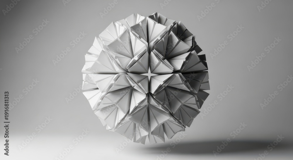 Origami Panel Szklany - Origami paper ball geometric shape black and white #1916811313