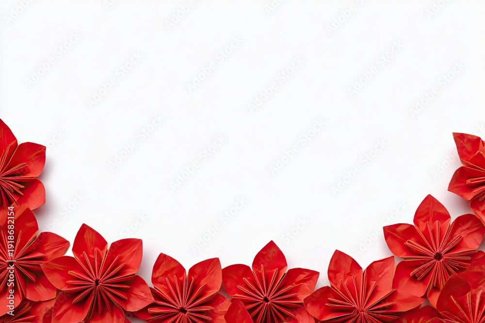 Origami Panel Szklany - Red origami flowers border a white background #1918682154