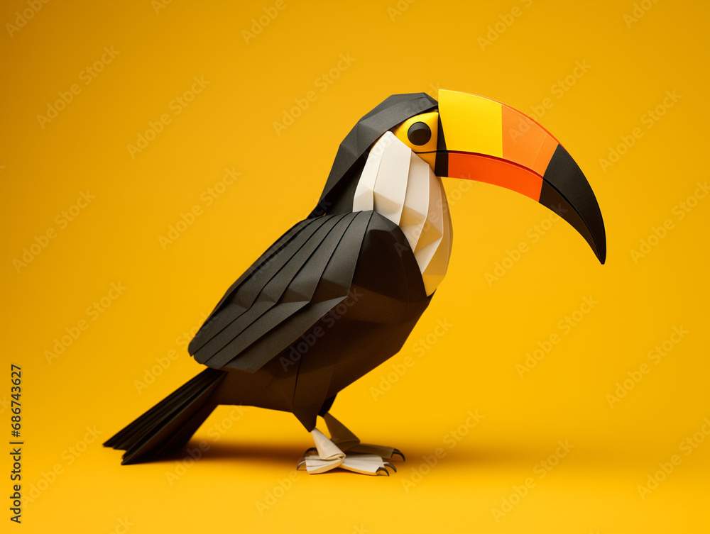 • A Paper Origami of a Toucan on a Solid Background with Studio Lighting