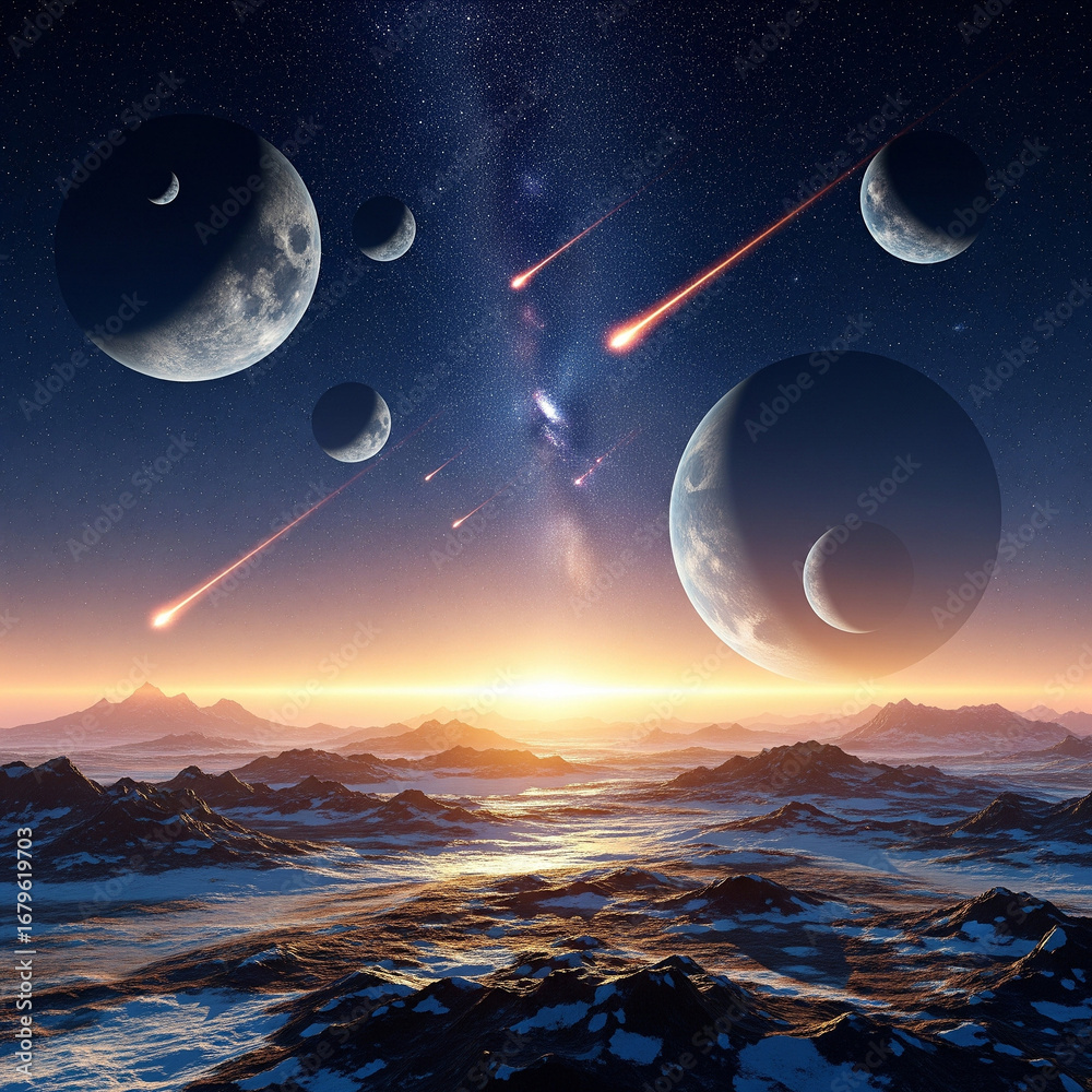 Panel Szklany Kosmos - Planets and Meteors #1679619703