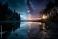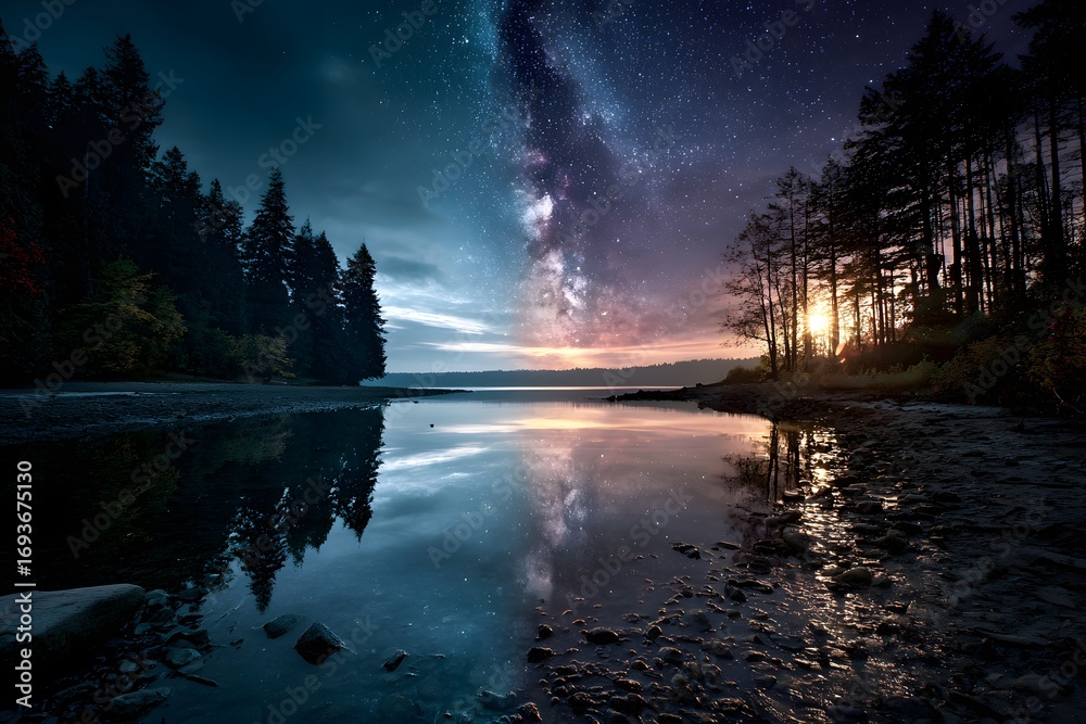Panel Szklany Kosmos - Nachthimmel mit Milchstraße über See und Wald #1693675130