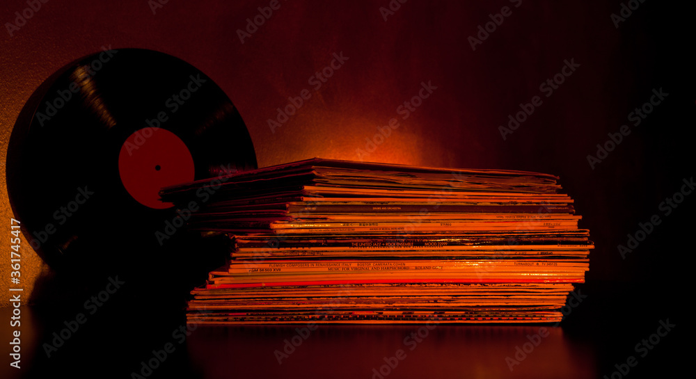 Panel Szklany Muzyka - Kolekcja płyt winylowych, aranżacja. #361745417