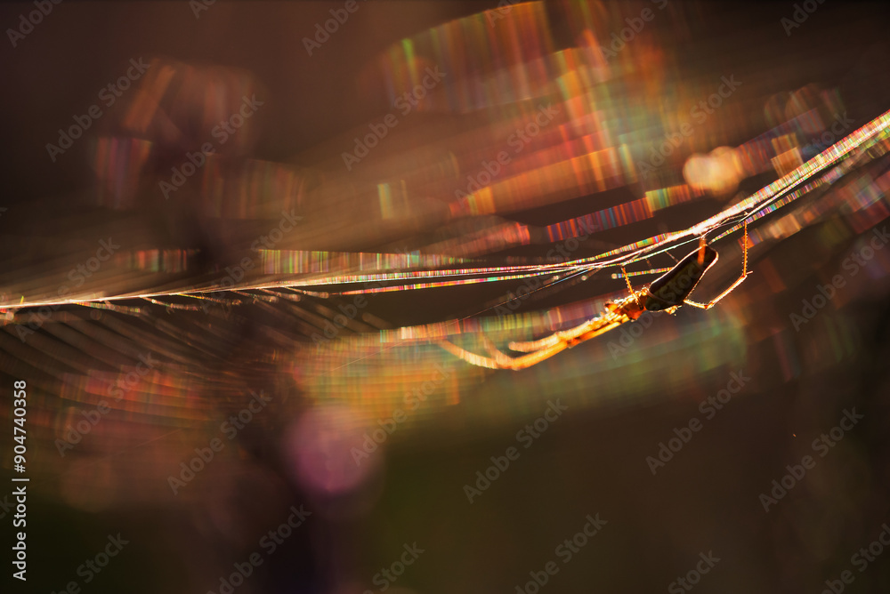 • Pajęcza sieć mieniąca się w słońcu kolorami tęczy.