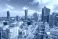 • Warszawa, panorama miasta. Widok z drona. Niebieskie niebo i chmury.