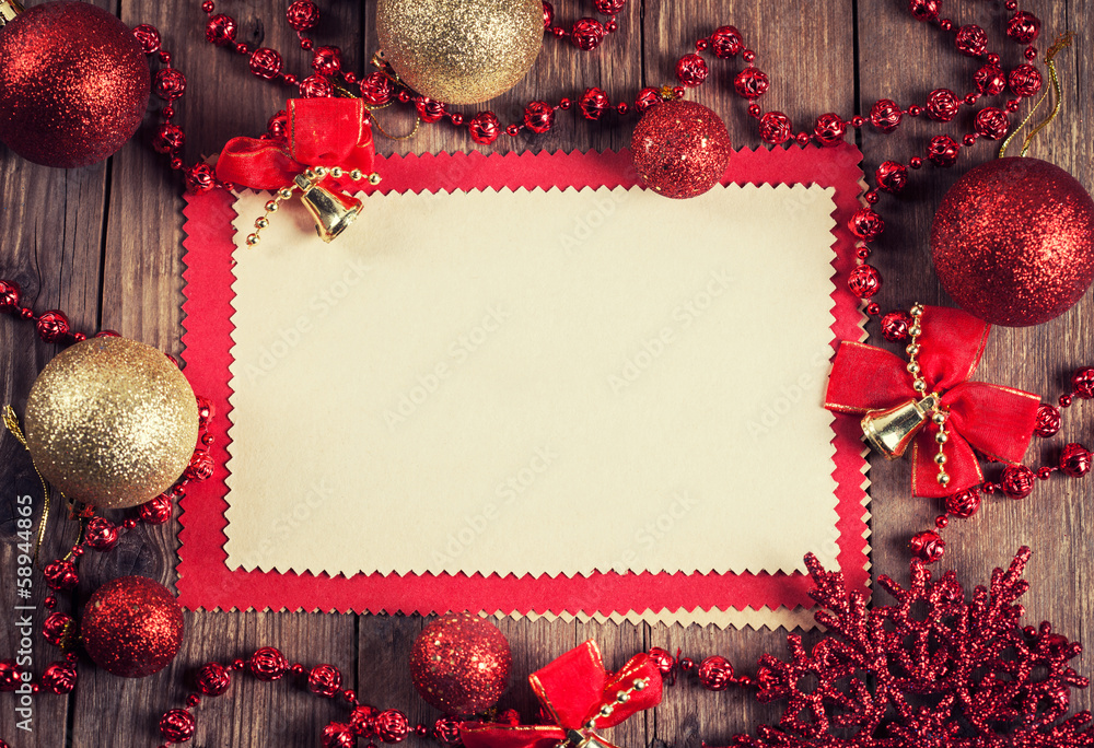 Panel Szklany Tło - vintage paper with christmas decoration on wooden background #58944865