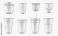 • Transparent cup. Clear plastic mockup. Disposable coffee container. Empty soda drink glass with lid. Cocktail and milkshake tableware. Tableware mug. Vector realistic mock up objects set