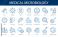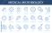 • Clinical microbiology line icons set, infection research concept. Pathogen, virus, cell, DNA and immune protection symbols. Editable stroke.
