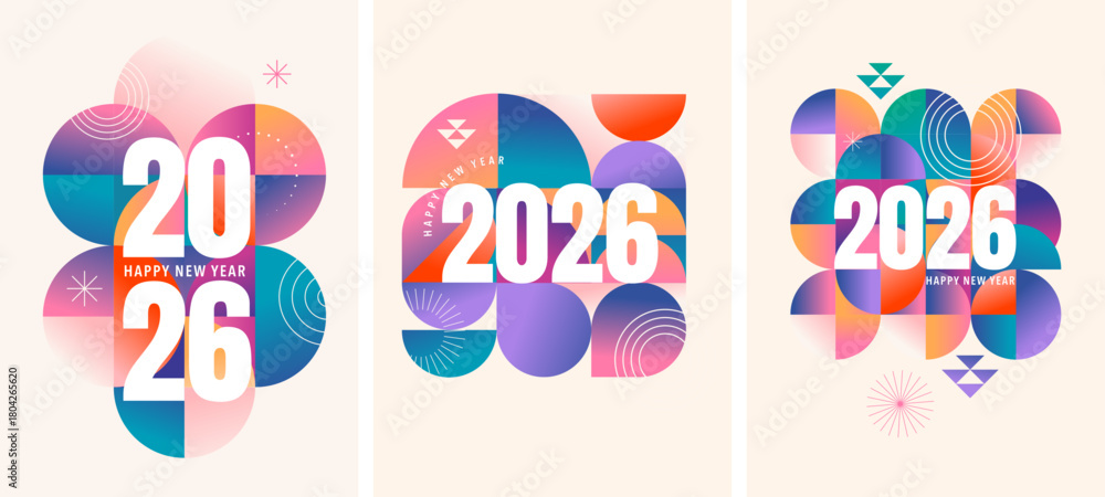 • Abstract colorful geometric Happy New Year 2026 templates