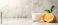 Panel Szklany do Kuchni - Fresh lemon and glass of milk on marble background with copy space for text #1198925015