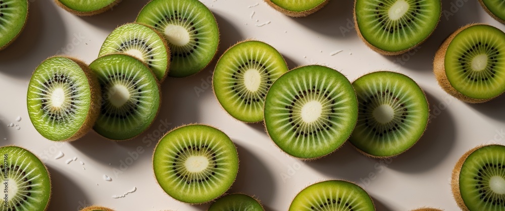 • Sliced mini kiwi fruits as background for food blogs