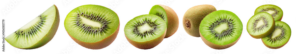 • PNG Fresh sliced kiwi fruit assortment, element set on transparent background