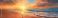 • Golden sunset beach view, wave, sand, footprints, orange sky & horizon, peaceful nature