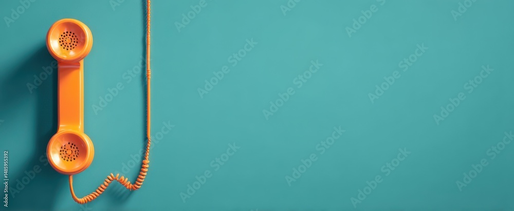 • The bright orange telephone receiver against a teal background.
