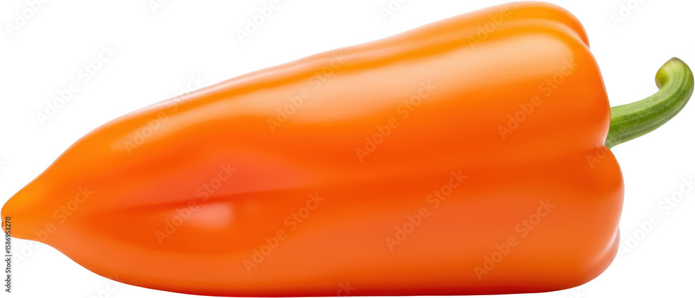 • Single ripe orange bell pepper with a green stem isolate orange pepper