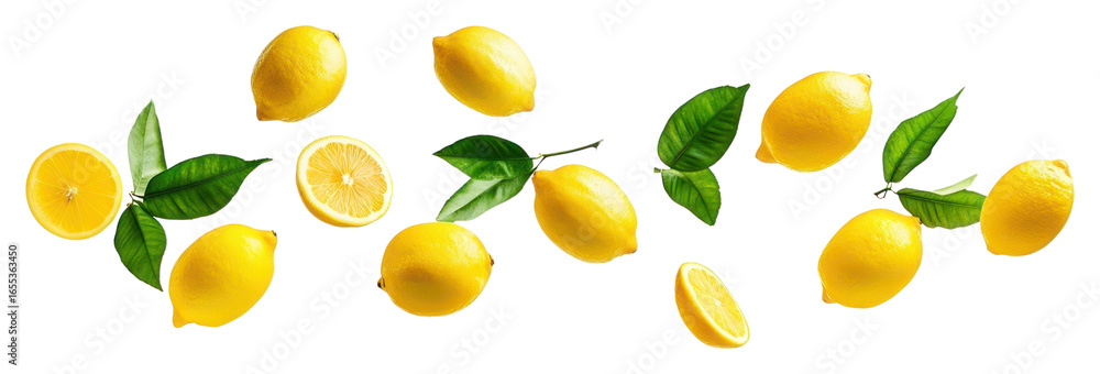 Panel Szklany do Kuchni - PNG Real lemons with leaf background floating produce. #1655363450