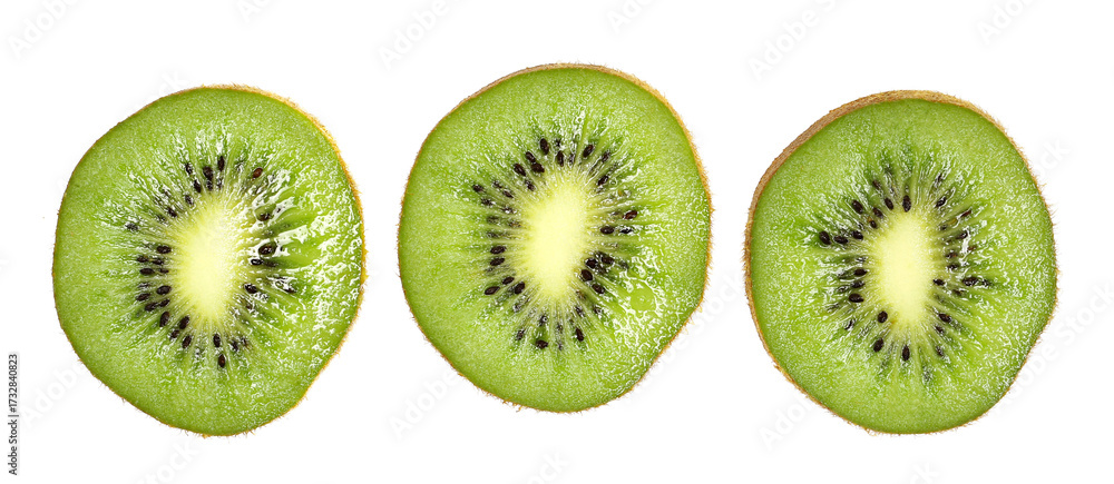 Panel Szklany do Kuchni - Set fresh slice kiwi fruit isolated on white, top view #1732840823