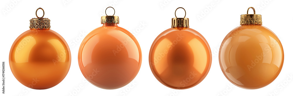 • Four bright orange Christmas ball ornaments isolated on transparent background