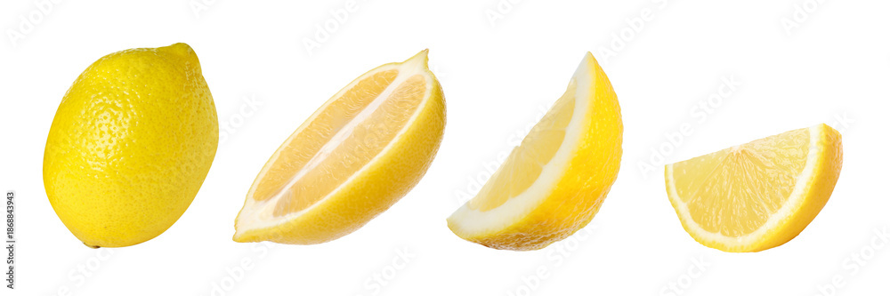 • Fresh lemon isolated on white, set. Whole and sliced