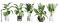 • assortment of five lush green potted banana plants with broad leaves, presented in stylish modern planters for contemporary interior decoration.