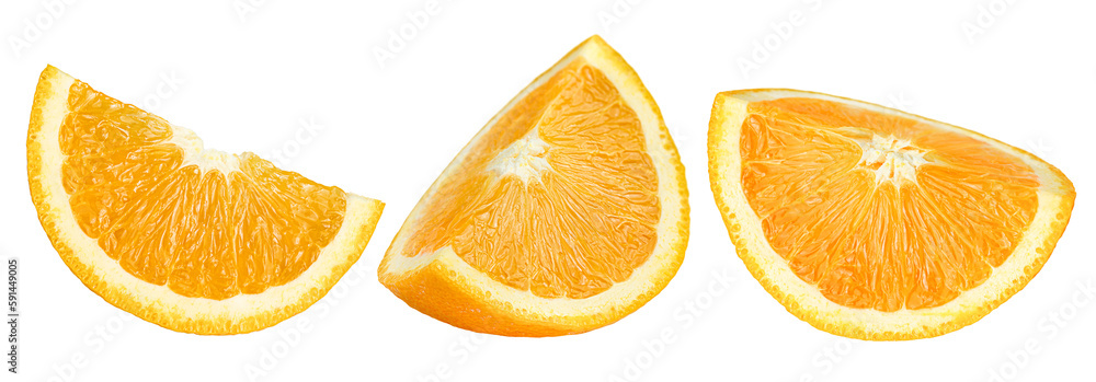 Panel Szklany do Kuchni - three orange slices on a white isolated background #591449005