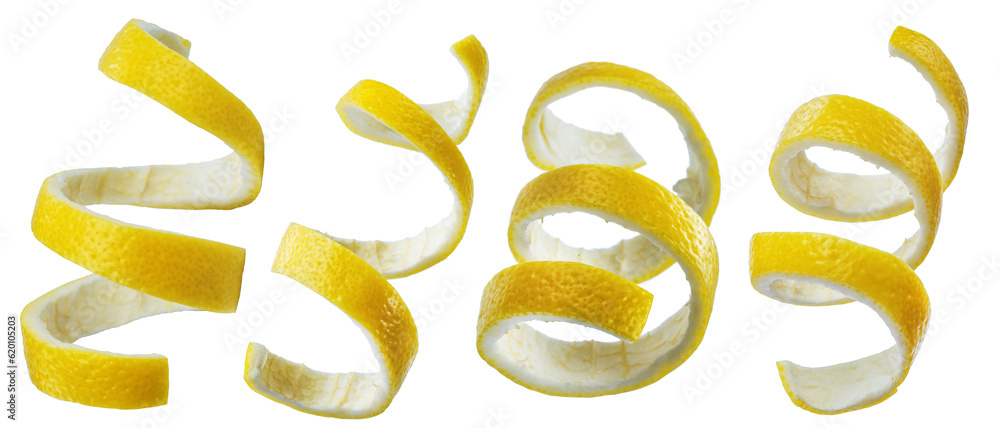 • Set of lemon peels or lemon zests on white background. File contains clipping paths.