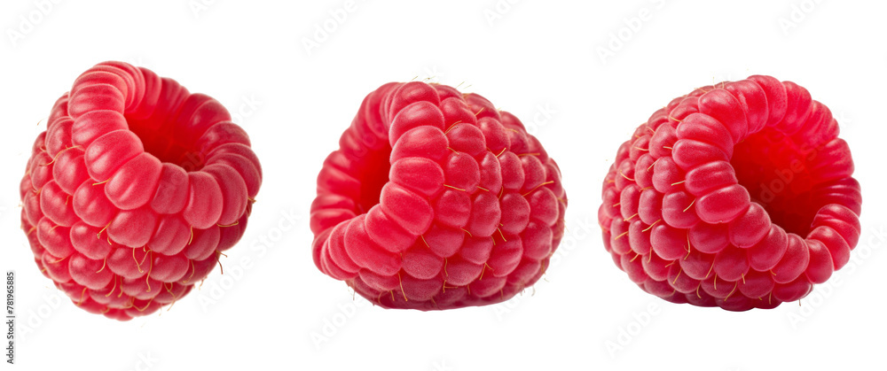 • Collection or set of various fresh ripe raspberries isolated on white background