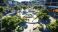 • Urban plaza design, sunny day, people relaxing, green spaces, modern architecture, for urban planning