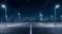 • A sleek car plaza with a skyline illuminated by streetlights. Featuring urban sophistication