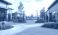 Panel Szklany do Łazienki - Modern retail center with landscaped pathways and surrounding greenery on a sunny day. #1308090190