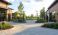 • Modern retail center with landscaped pathways and surrounding greenery on a sunny day.