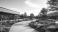 Panel Szklany do Łazienki - Modern shopping center with lush landscaping and walkable pathways under a clear blue sky. #1308092526