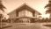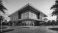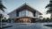• Modern architectural design showcases sleek building with large glass windows, surrounded by palm trees and spacious plaza