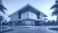 Panel Szklany do Łazienki - Modern architectural design showcases sleek building with large glass windows, surrounded by palm... #1338694961