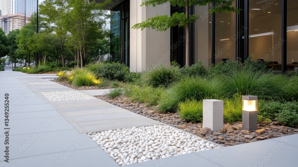 Panel Szklany do Łazienki - Modern, landscaped plaza outside a contemporary office building #1349255240