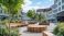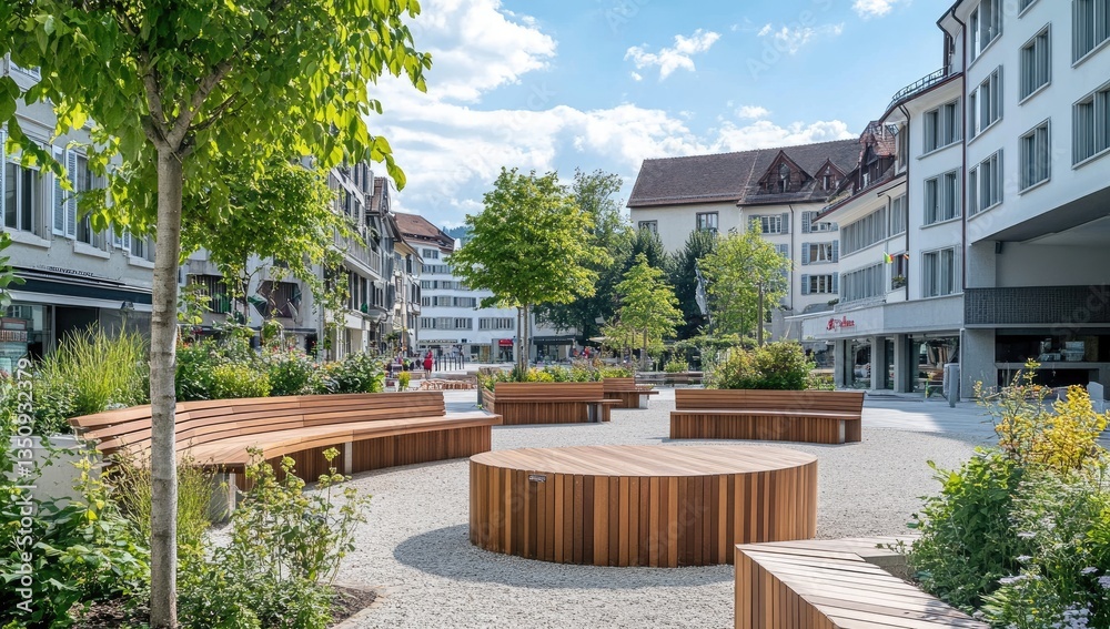 Panel Szklany do Łazienki - Urban plaza with seating and greenery. A charming public space #1350932379